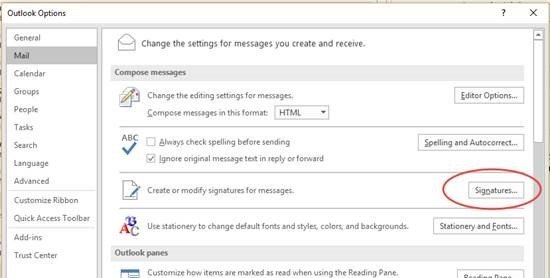 - Hold down the CTRL button and click the Signatures button. This will open the Windows folder that contains all the files that are used by Outlook to insert signatures in your emails.